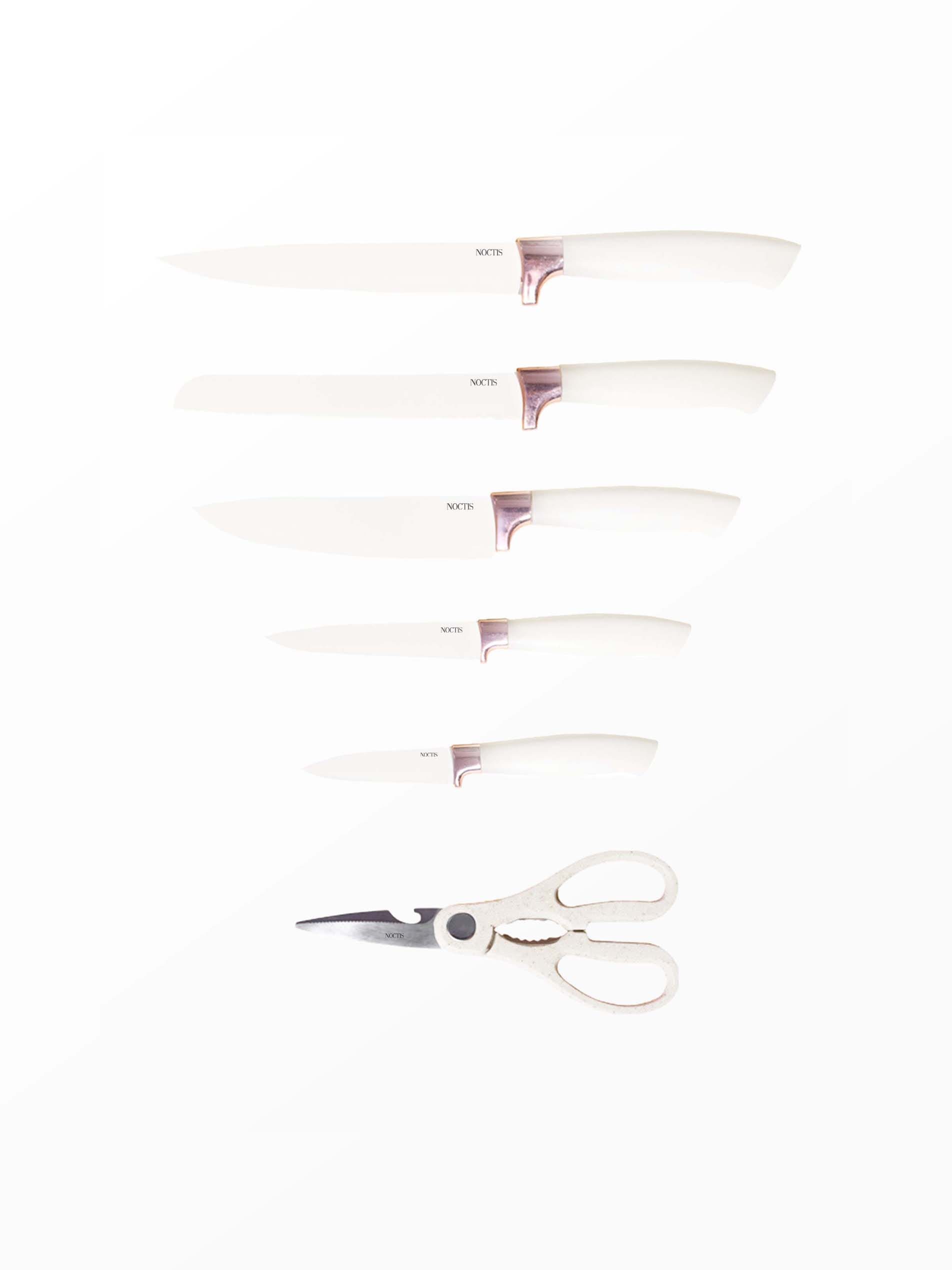 Alles wat je nodig hebt voor dagelijks koken: Noctis Houder, Spatel, Pastalepel, Bakspatel, Slabestek, Opscheplepel, Soeplepel, Platte spatel, Pannenlikker, Tang, Garde, Oliekwast, Snijmes, Broodmes, Chef’s mes, Universeelmes, Fruitmes, Keukenschaar en Snijplank.