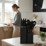 Alles wat je nodig hebt voor dagelijks koken: Noctis Houder, Spatel, Pastalepel, Bakspatel, Slabestek, Opscheplepel, Soeplepel, Platte spatel, Pannenlikker, Tang, Garde, Oliekwast, Snijmes, Broodmes, Chef’s mes, Universeelmes, Fruitmes, Keukenschaar en Snijplank.